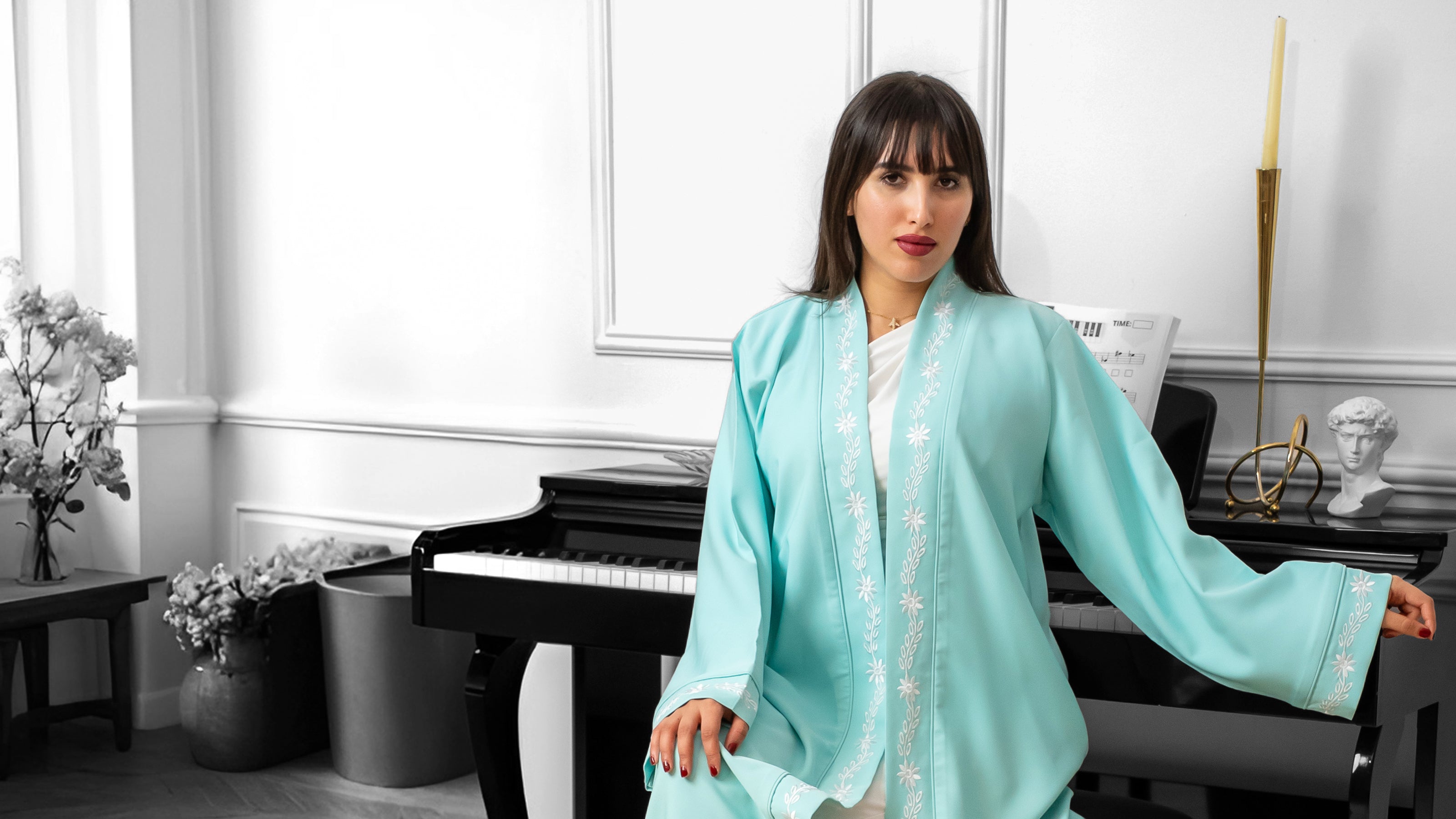 C004 — Mint Blue Cardigan Embroidered Abaya